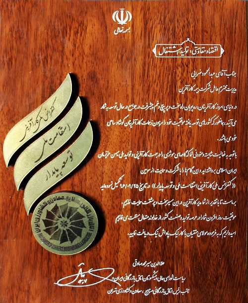 این اتاق در سومین "کنفرانس ملی کارآفرینی، استقامت ملی و توسعه پایدار"، با اهدای لوحی عبدالمحمود ضرابی مدیرعامل بیمه کارآفرین را در حوزه کارآفرینی شایسته تقدیر دانست.